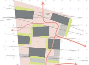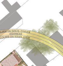 Les tracés directeurs suivent les lignes de construction des bâtiments alentour : ceux de la cité et arts (gauche) et du projet urbain (droite)