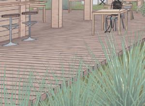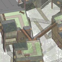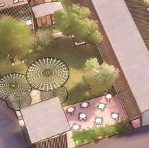 -Puis un espace de vie urbaine avec les logements d’un coté, et un bar terrasse de l’autre.