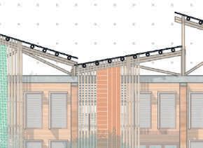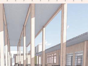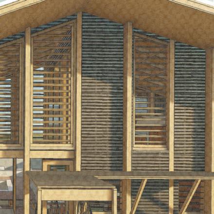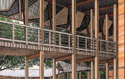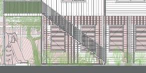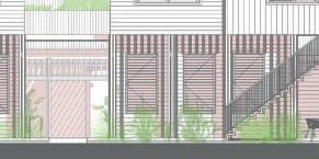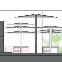 De par sa structure simple et ses différentes options de portiques, ce projet tends à être multiplié et modulé autour de l’axe de la gare, pour y créer les futurs usages que voudront créer les habitants. Le bambou est décliné sous différentes formes pour différentes utilisations : la structure, les protections solaires et l’habillage.