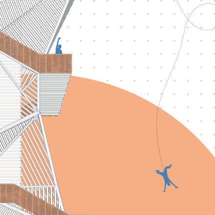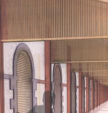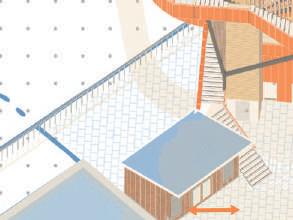 Nous avons également conservé les deux archétypes qui représentent le bâtiment, c’est-à-dire les arches et les garde-corps, et les avons détournés.