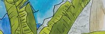 Sur format A1, nous devions retranscrir un texte décrivant un lieu dans un pays en dessin. A gauche nous avons la Gare Chhatrapati Shivaji à Bombay, et à gauche nous avons la ville de Macao en Chine