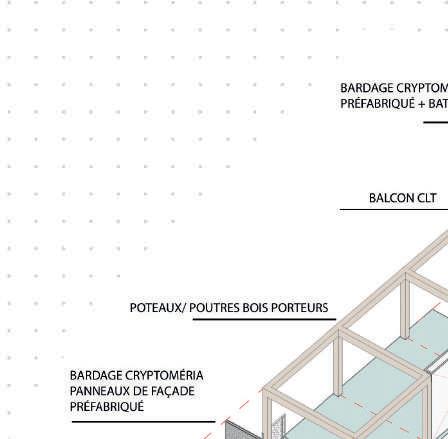 Chaques «plots» sont orientés afin de capter les vents et éviter les vis-à-vis. Chaques façades est composées d’un des ci panneaux ci-dessus, ainsi chaque mur est choisi en fonction du vis à vis et des vents. Le jardin sur la toiture est gérée par un local associatif située au RDC.