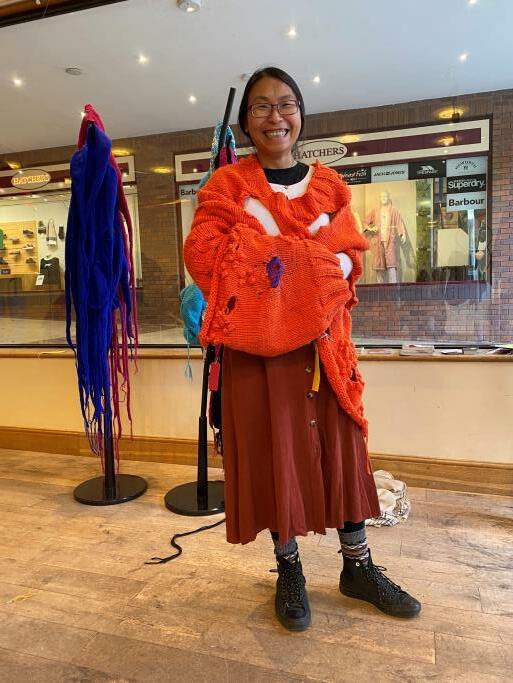 Entrails, 2022, hand knitting, installed at the Holburne Open as part of seam collective’s