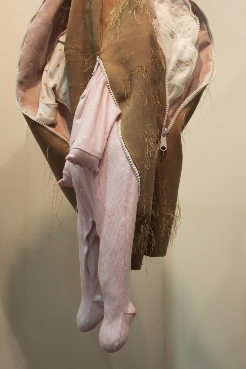All the babies I might have had 2, 2015, detail, leather, imitation leather, felted knitting, used clothing, zips