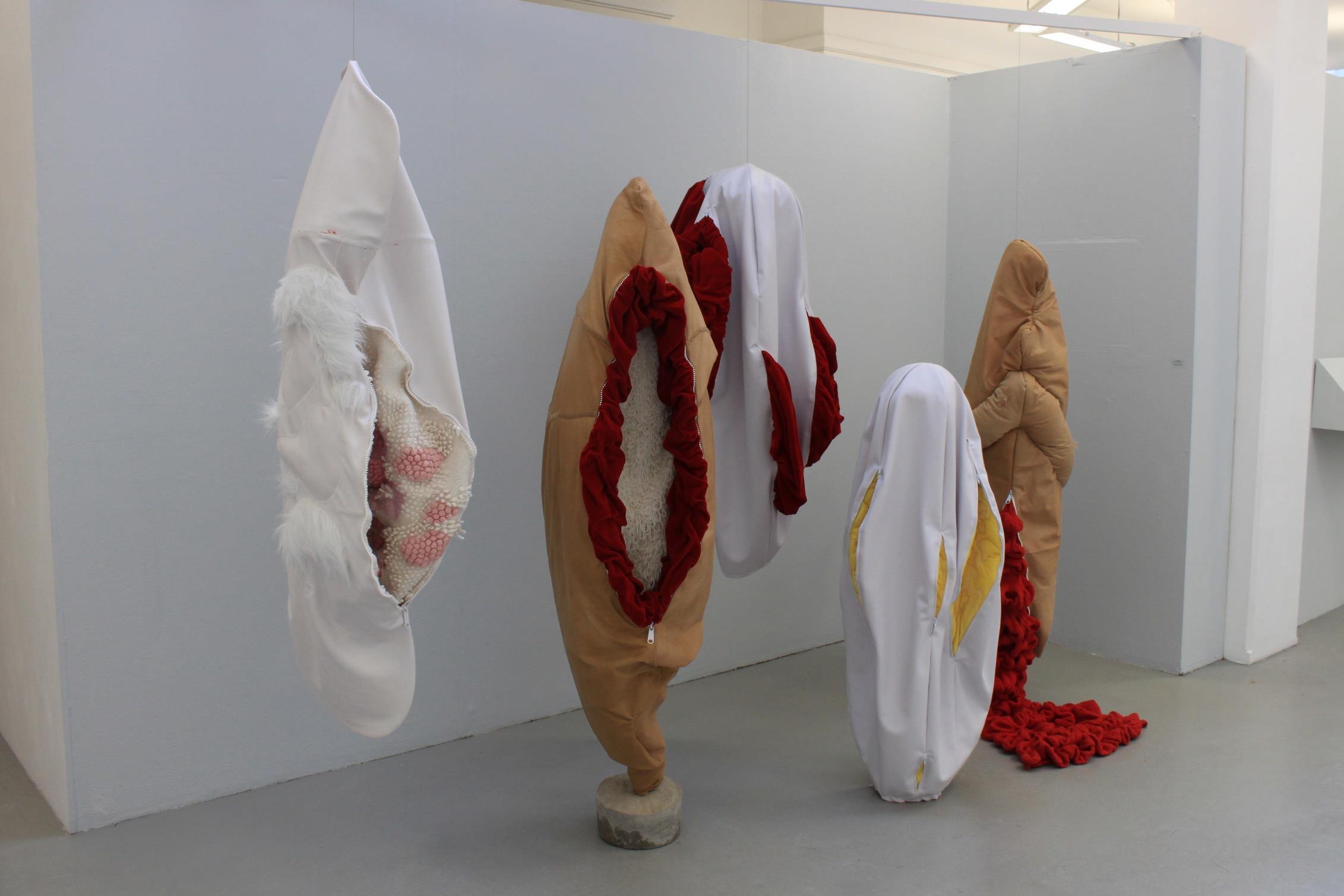 Parts of me, 2017-2018, felted hand knitting, a series of 6 sculptures, installed at The Cells at Town Hall Arts, Trowbridge, for ‘Subversive surfaces’, June - July