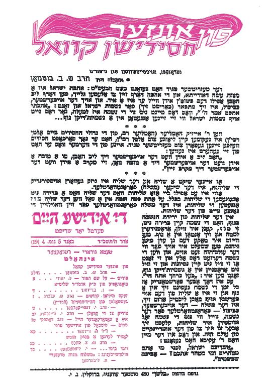C’est exactement ce qui se produisit. Lorsque la Rebbetsen Chterna Sarah mourut en 1942 à New York, son fils n’était pas présent.