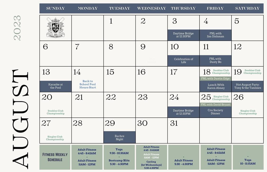 This is a great time of year at the Club and there is still plenty of Summer remaining with more activities at the pool and pavilion, the upcoming Dock Party, prime boating days, Tennis Club Championships, and Labor Day festivities on the horizon