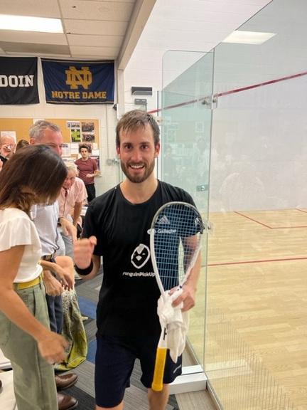 In the first game both players were hitting good depth trying to contain each other it was close all the way through, and Khan played a couple of fantastic winners to take the first 9-11 In the second game, Romiglio dictated play and was working Khan very hard into the corners, Romiglio winning the game 11-3 The third game was extremely close with some fantastic movement from both players, it was tied at 6-6, 2 errors from Khan put Romiglio 8-6 up, and Romiglio managed to close the game out 11-7 with a fantastic 2 wall boast Romiglio came into the fourth game in a dominant mood and got ahead quickly and there was no turning back he took the game 11-1 and the match 3-1 in 64 minutes to become the 2023 Louisville Open Champion