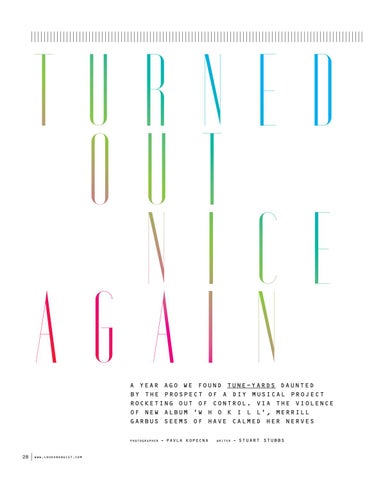 T U R N E D O U T N I C E A G A I N A YEAR AGO WE FOUND TUNE-YARDS DAUNTED BY THE PROSPECT OF A DIY MUSICAL PROJECT ROCKETING OUT OF CONTROL. VIA THE VIOLENCE OF NEW ALBUM ‘W H O K I L L’, MERRILL GARBUS SEEMS OF HAVE CALMED HER NERVES PHOTOGRAPHER -