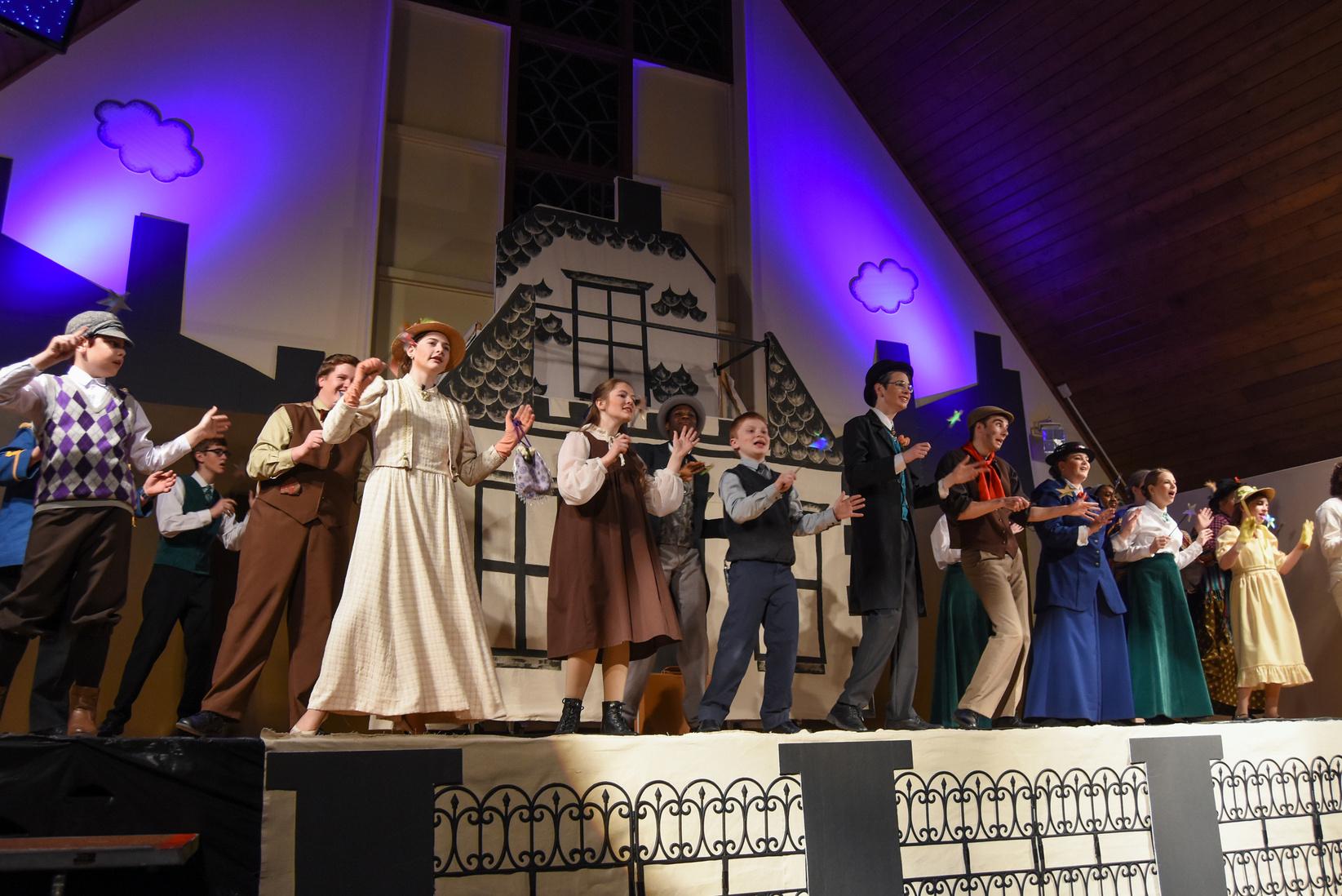 Under the leadership of our Upper School Band & Theatre Director, Jamie Roscoe, studentsingrades6 12broughtthebeloved story and music of Mary Poppins to life this past spring Selling out for all three performances, our students displayed skills andtalentsworthyofastandingovation!
