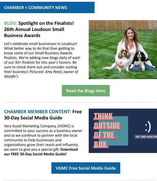 • 50 Word limit for newsletter blurb, link for post (on business website, or Chamber website), call to action for button