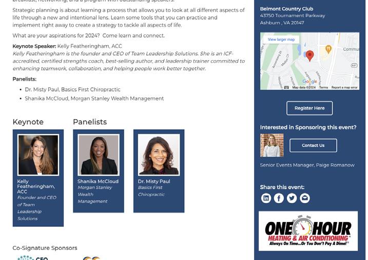 • Banner rotating ad for 12-months in both the online Business Directory landing page and on the Event Registration pages (over 100 events per year)