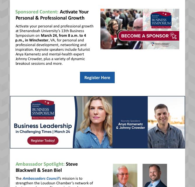 • One sponsored email sent to list of Chamber Member contacts, over 3,000 emails