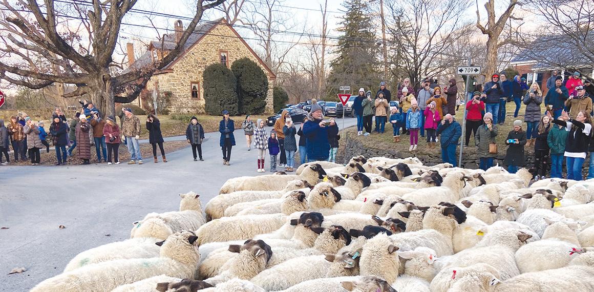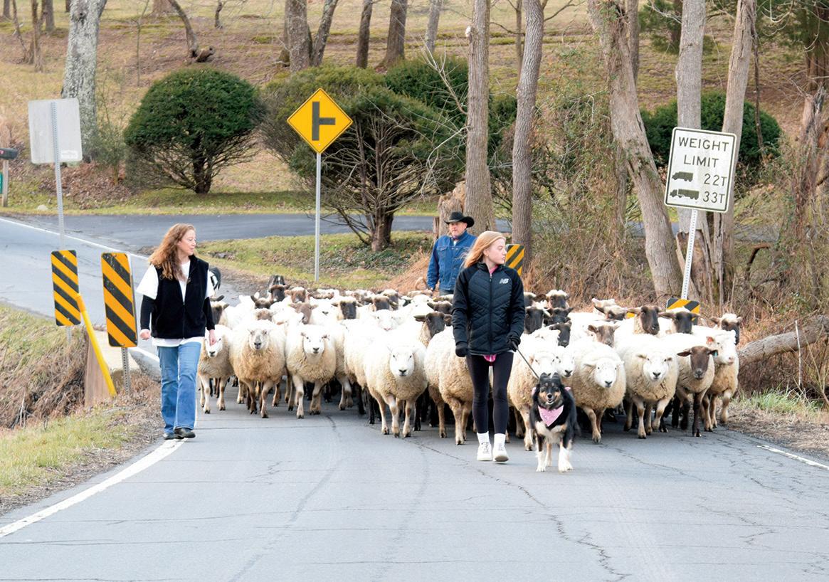 The annual Cochran family sheep drive drew a large crowd of spectators in the village of Lincoln on Saturday morning. With the help of fastmoving border collies, the flock walked following roads from the fall pasture west of the village back home to Stone Eden Farm to the east.