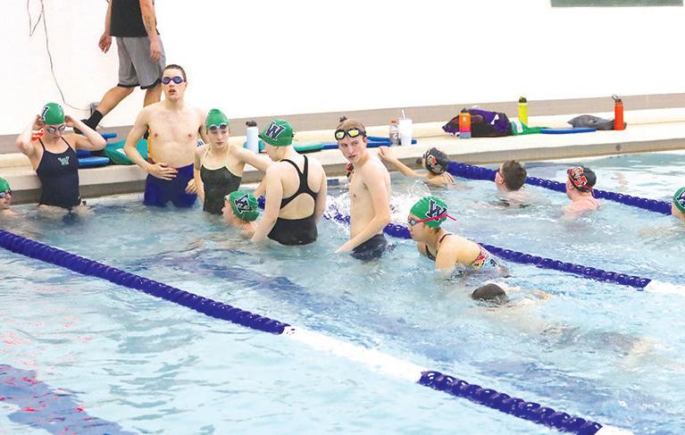 high school swim team practices at the Round Hill Aquatic Center in January. The team has to fit all of its swimmers in the four lanes at the center.