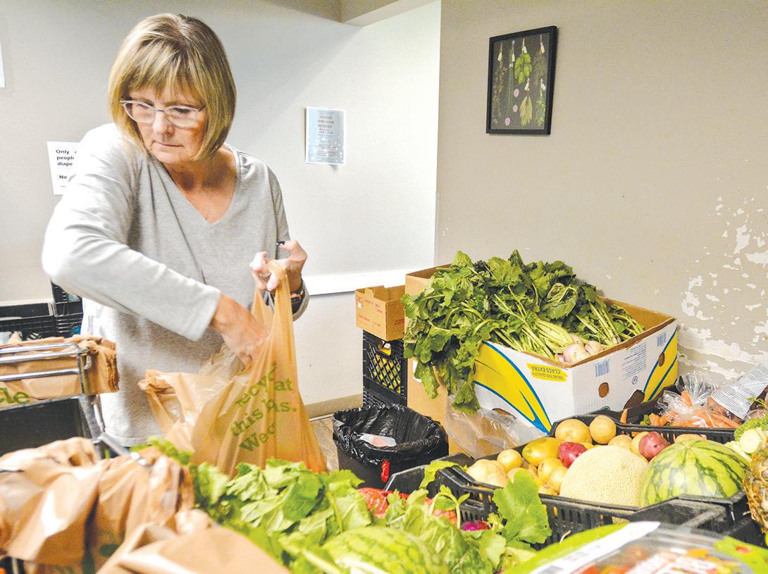 A Loudoun Hunger Relief volunteer sorts, loads and distribute bags of food inside the nonprofit’s food pantry.