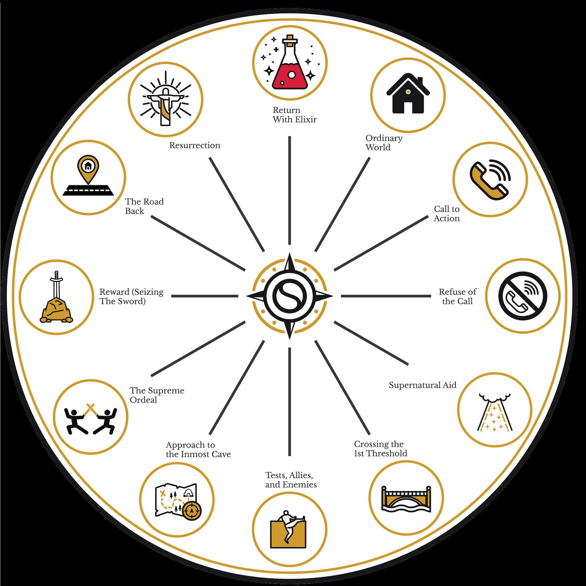 Reflectingtheanatomyofagrandfatherclock,the monomythvisualizes12stepswecallrealms.
