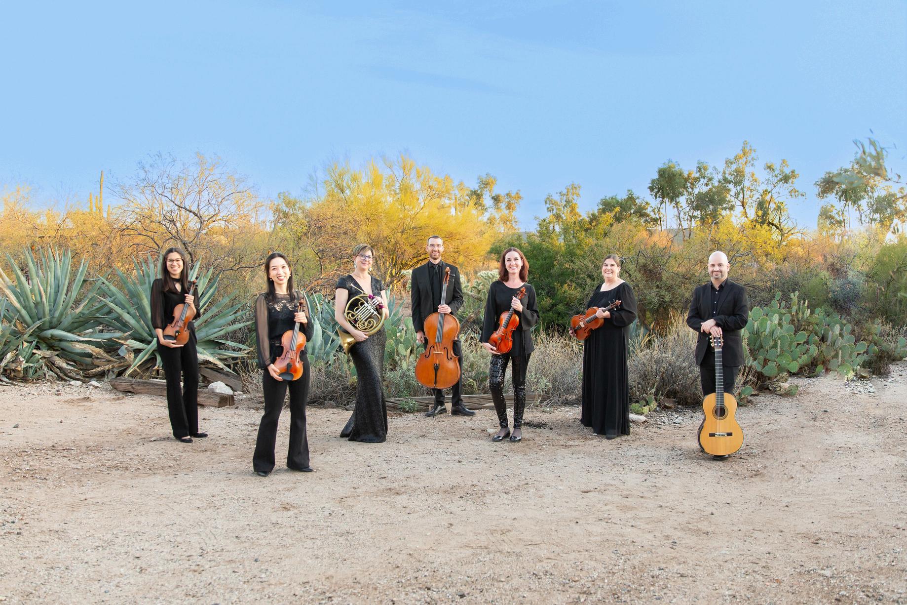 “Our home of Tucson, Arizona belongs to a region that has been continuously inhabited for over 4,000 years To this day, the landscape and people continue to shape the culture of the borderlands Join us for musical stories celebrating this beautiful, rugged, and often misunderstood place, told through the sounds of warm strings, evocative guitar, and the dynamic voice of the French horn.