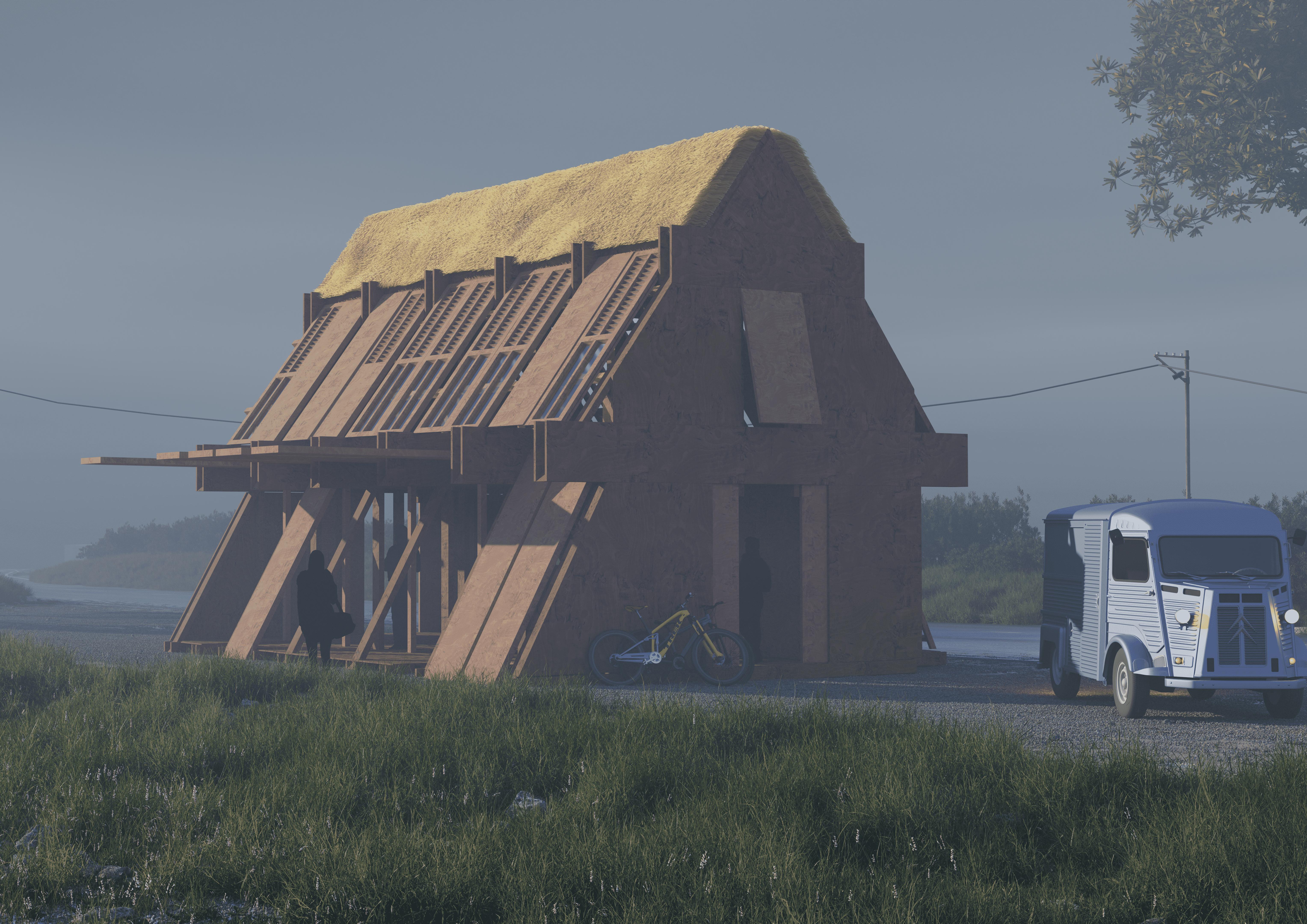 Une intégration d’éléments architecturaux légers dans le tissu urbain existant. Inspiré par l'architecture vernaculaire bretonne et l'utilisation de matériaux biosourcés, ce projet se compose de signaux urbains dispersées dans un vaste espace agricole.