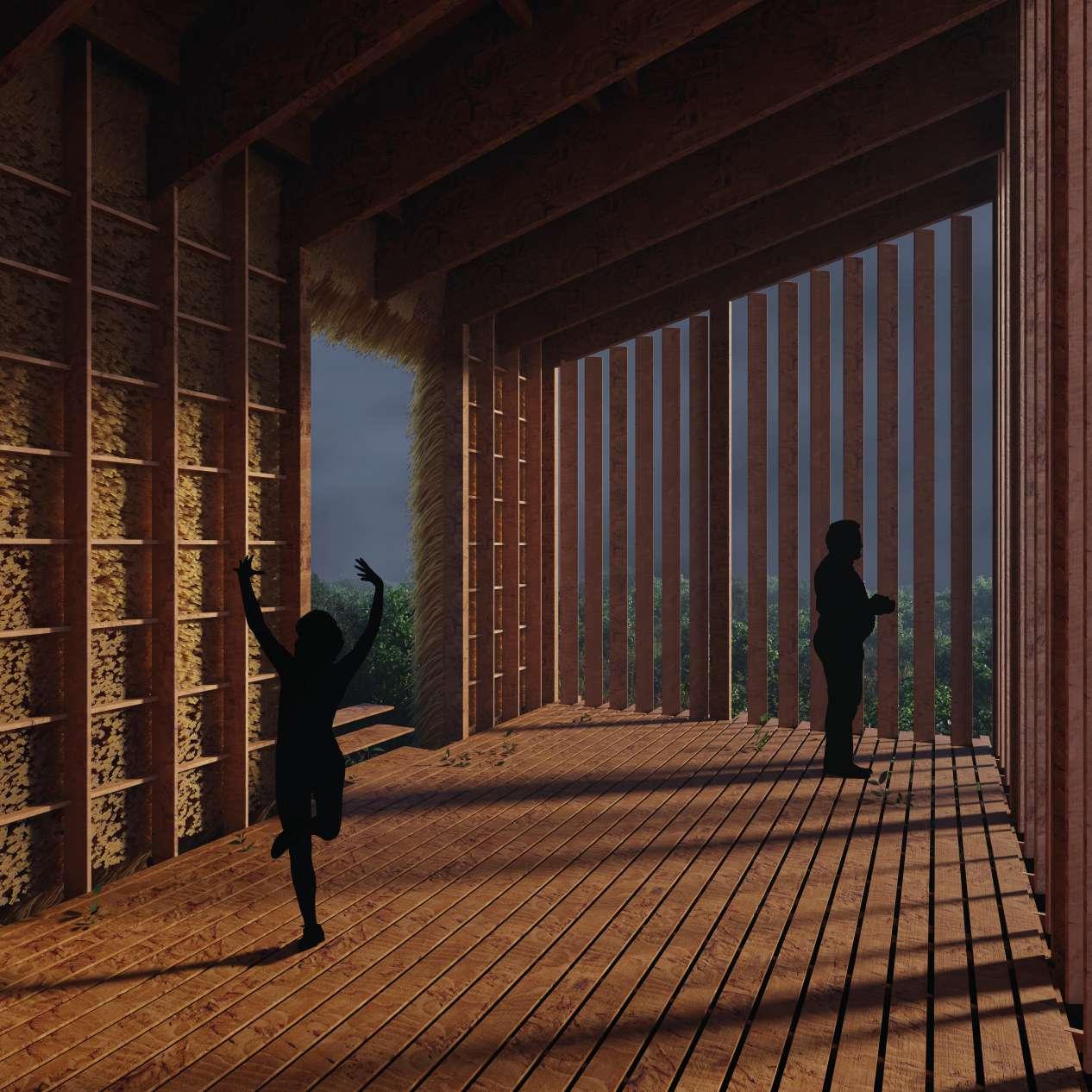 L'architecture se caractérise par une optimisation efficace de l'espace, offrant une base solide et une surface de travail spacieuse. Les pentes du toit sont conçues pour qu’une fois déployée, l’espace est décuplé. L’objectif étant d’intégrer des espaces de culture qui renforcent le lien entre les différents acteurs du territoire.