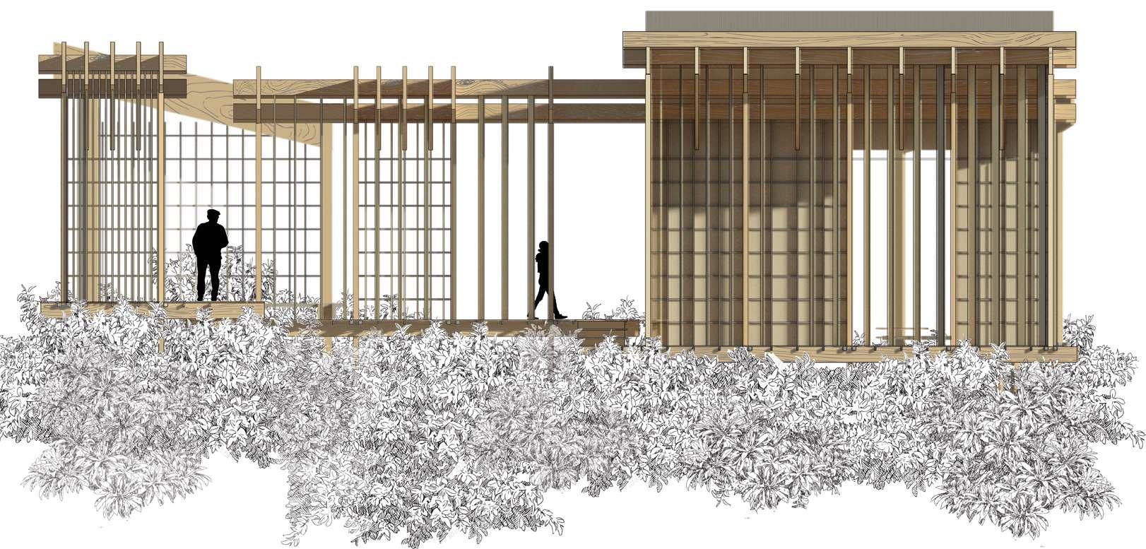 Perspective, SIGNAL SILENCIEUX Coupes et élévation, LE REFUGE & L’OBSERVATOIRE 28