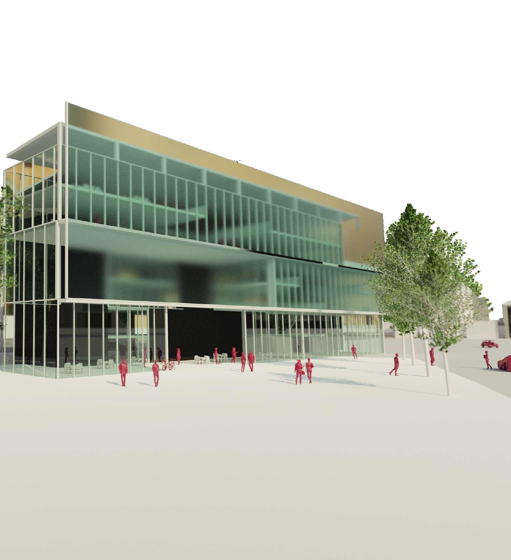 Le bâtiment résultant de cee initiative se présente avec une façade urbaine, dèrrière cee façade, une porosité, entre espace publique et privée, qui fait le lien avec l’esplanade. Conçu pour accueillir de nombreux usages, tel que des espaces de travail, de détente, de lecture, ainsi que des zones dédiées à l'archivage et l’exposition de livres.