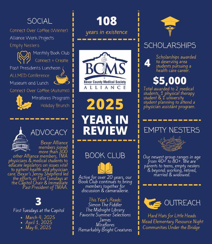 San Antonio Medicine is the official publication of Bexar County Medical Society (BCMS). All expressions of opinions and statements of supposed facts are published on the authority of the writer, and cannot be regarded as expressing the views of BCMS. Advertisements do not imply sponsorship of or endorsement by BCMS