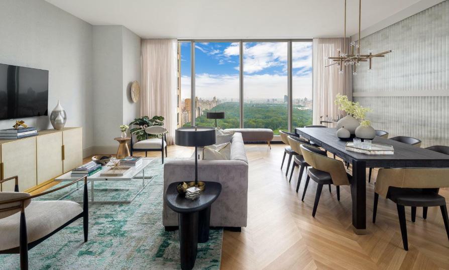 • Expansive enfilade of spectacular living and entertaining spaces with breathtaking views of Central Park incorporates living room, formal dining room, and gallery into a seamless entertaining flow