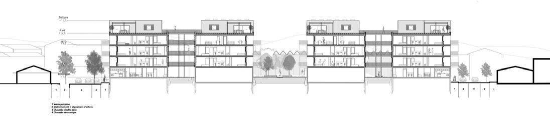 C’est à Sète, ville baignée par les eaux de la Méditerranée, que s’épanouit un projet urbain et architectural sur un site au passé industriel et portuaire inoccupé. Ce projet est le résultat d’une réflexion de l’échelle territoriale à l’échelle de la typologie, visant à créer un environnement harmonieux où l’habitat collectif et la pierre sont en symbiose. Le projet s’étend le long du quai, offrant ainsi une vue panoramique sur les canaux et les environs pittoresques. Les rues, soigneusement aménagées, sont conçues pour encourager la promenade et faciliter les interactions sociales. Les rez-de-chaussée, sont reservés aux halls d’entrées, commerces, espaces communautaires... créant une interface dynamique avec l’espace public. Les typologies de logements sont à caractère évolutif et modulaire, rendu possible grâce à la mise à disposition d’une pièce supplémentaire.
