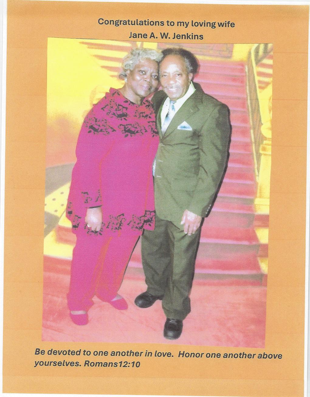 Jane moved to Trenton NJ at the age of 19. She met and married the love of her life, Benjamin Jenkins Jr. This past November they celebrated 60 years of marriage and the love is stronger now than it was over 60 years ago. God blessed Jane and Ben with 4 children. Benjamin lll, Rodney Timothy, Sonia Marie, and Tiffany Jane. They have 21 grandchildren and 22 great grandchildren. Along with her 2 brothers, Booker T and Leroy, Jane is the only surviving sister of the Whetstone clan, making her matriarch of the family and surrogate mother to her nieces and nephews.