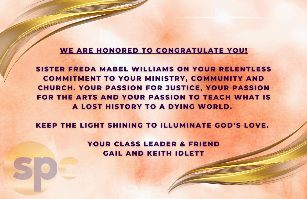 E SALUTE AND FREDA HONOREES OF ST. PAUL AMEZ CHURCH FOR THEIR EXEMPLARY SERVICE, CREATIVITY, FAITH, DEDICATION, COMPASSION AND HUMBLING SPIRIT.