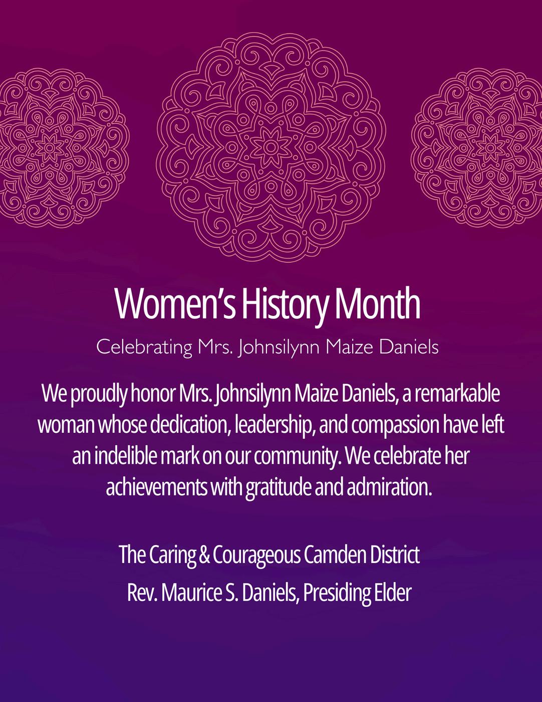 Johnsilynn Maize-Daniels, originally from Toledo, Ohio, moved to New Jersey at the age of ten. She was born to George and Catherine Maize and grew up spiritually under her father's leadership and ministry, the Rev. Dr. George W. Maize III. She is married to the Rev. Maurice Daniels, Sr. and they have one child together Maurice Daniels, Jr.
