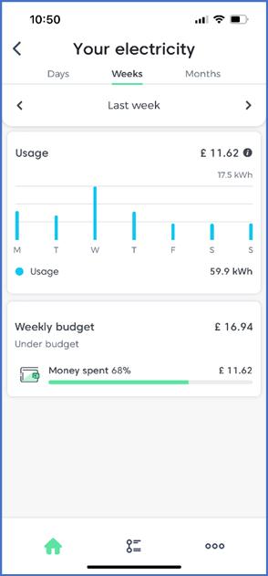 In the example on the left, the report shows the property's light and power consumption for the previous week as £11.62