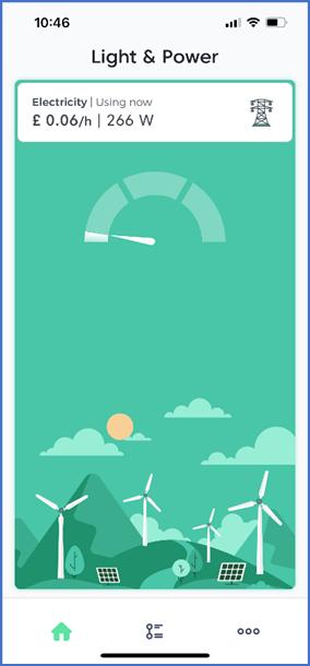 In the example on the left, the property was using 266 Watts of power at 10:46. This small background usage may cost around 6p per hour.