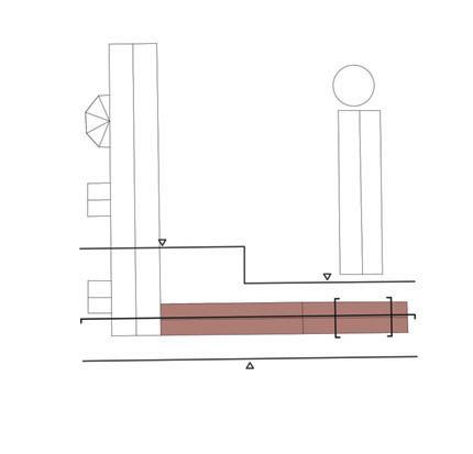 Ce projet vise donc à adoucir de manière à diminuer la perception d’obstacle. Les pieds ; centre de l’équilibre sont posés à l’horizontale pour une meilleure stabilité et appréciation de l’espace, le nombre de marches permet une ascension confortable et la pente dessinée correspond à l’angle de montée le plus faible possible pour ce terrain.