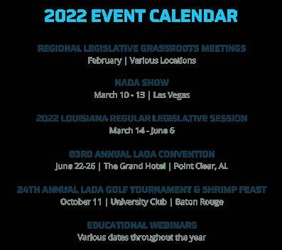 We will be hosting our Regional Grassroots meetings in the spring and educational webinars throughout the year so that dealers are informed about these and other critical state and national issues. In addition, LADA has on retainer some of the best franchise law, employment law and accountants ready to answer all your tough questions at no extra costs to you.