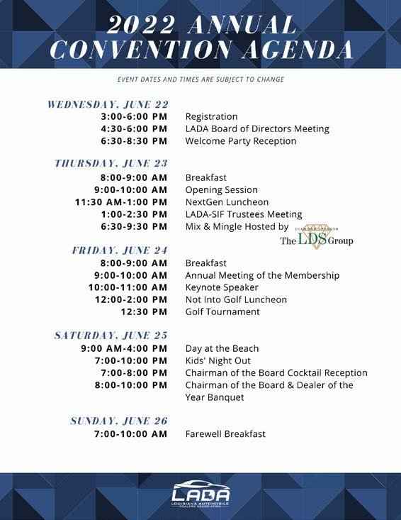 The National Automobile Dealers Association and its dealers reached major milestones in what has been one of the most complex times in our industry’s history. Franchised dealers from around the nation are standing strong in the face of a global pandemic, volatile market conditions, the evolution of EV technology, and an onslaught of challenges coming out of our nation’s capital. NADA has been proudly holding the front lines, and we couldn’t do it without the support and engagement of tireless dealer bodies like the Louisiana Automobile Dealers Association. As we look toward the year ahead, we must continue to gain ground on our most critical issues of 2022.