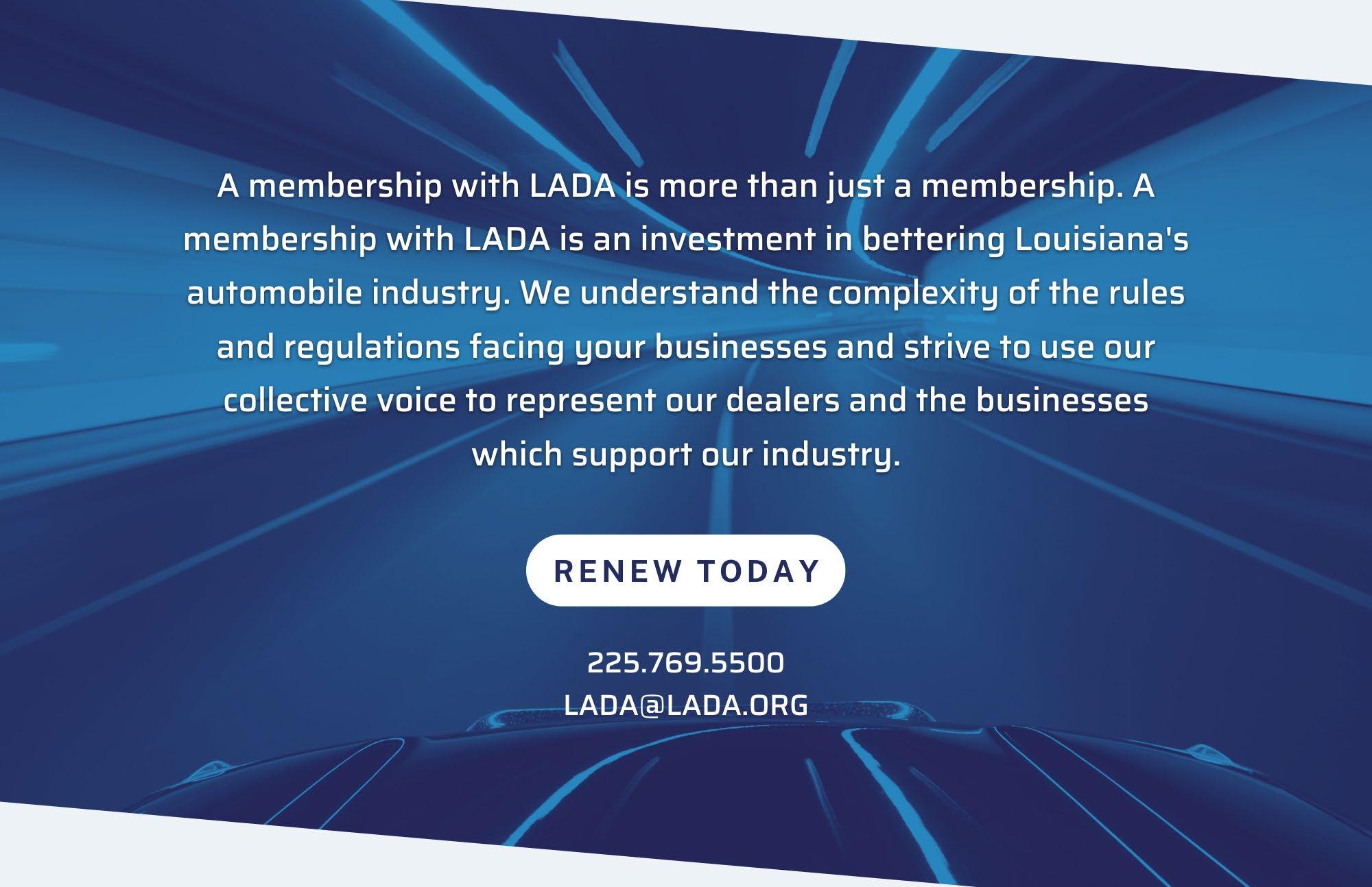 I hope you’ve all had a great start to 2023. By the time this article hits your desk or inbox, most of you should have already received your dues renewal letters and PAC invoices. Thank you to everyone that has renewed and for your continued confidence and investment in LADA. We thank you for trusting us to carry out our mission to promote and protect the automotive trade in Louisiana.