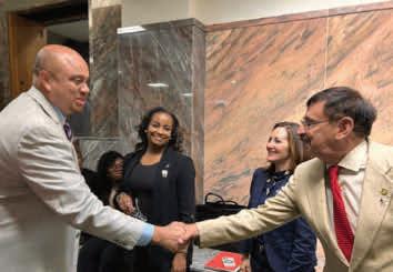 Above: Dr. Suzanne Fournier (NODA) and Dr. Kimberly Bibbins (SWLA Center for Health Services) share their testimonies on the necessity of community water fluoridation. Left: Rep. Jason Hughes and Crystal Rommen, LCSWBACS, after her son's compelling testimony on the importance of community water fluoridation.