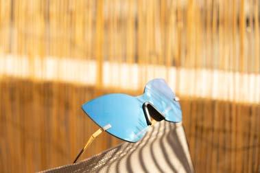 Styling Tip: Balance the boldness of oversized frames with a sleek, minimalist outfit. Think high-waisted shorts, a tuckedin blouse, and slide sandals.