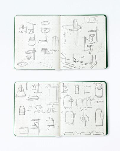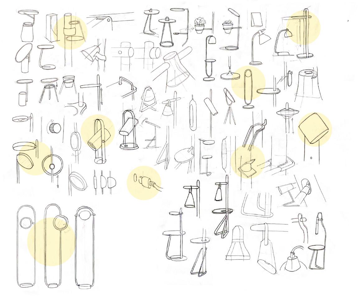 Initial sketches. Experimenting with form, shape and function. Steering towards a standing light and how it could be used.