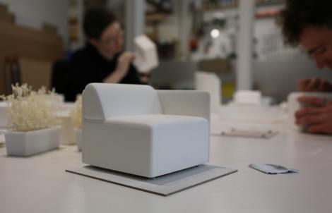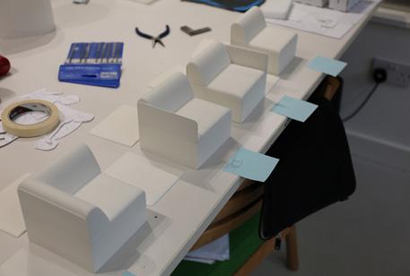 ReWork. Focusing on the modern workplace and how this can be used to help sell the product. Using 3D printing I created 1:6 scale models. These were presented at the showroom to clients.