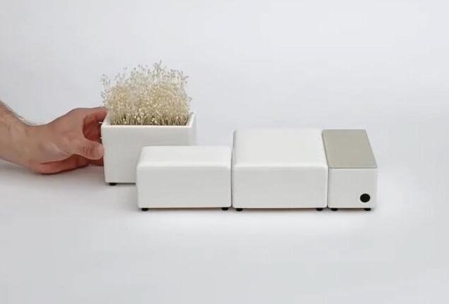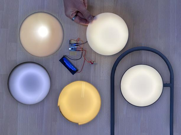 Prototype manufactured using steel, foam, 3D printed internal parts, opal acrylic and matt black acrylic.