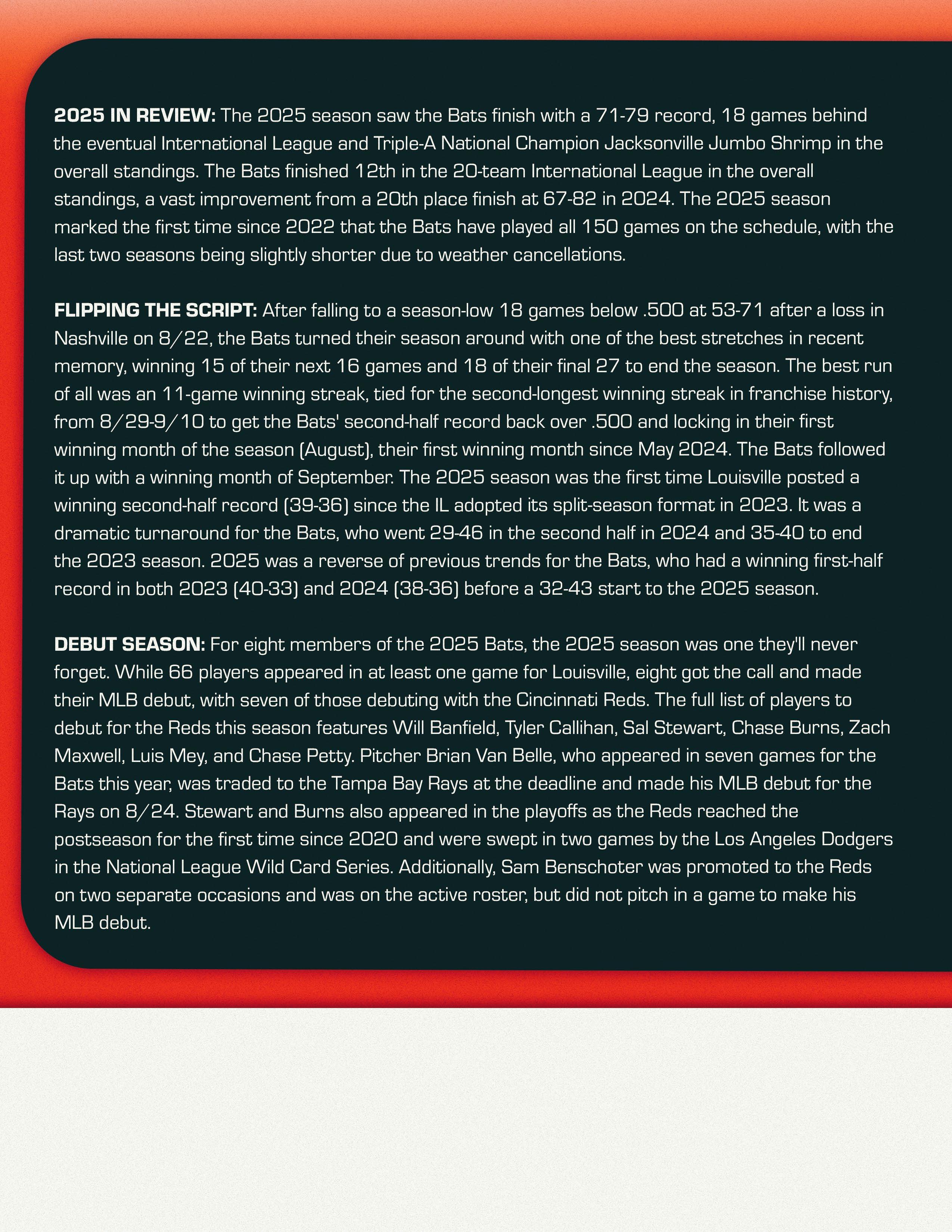 In December 2023, the Bats were acquired by Diamond Baseball Holdings (DBH), an organization that owns and operates select minor league clubs affiliated with Major League Baseball (MLB).