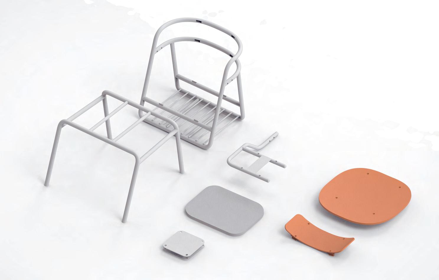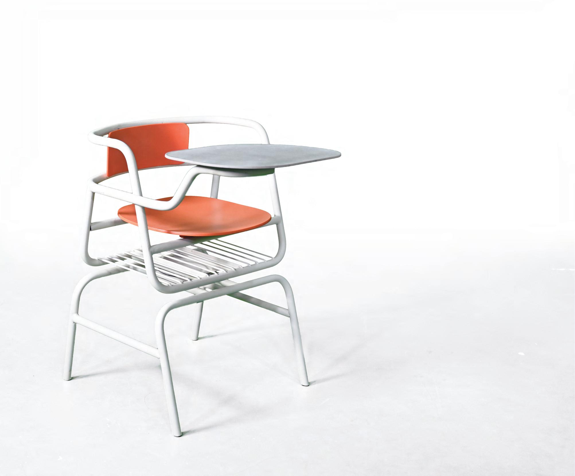 ROJOY是專為高中及大學多元課程設計的鋁製課桌椅。因應多元課程不同教學 方式而設計出相對應功能。可旋轉為其特色功能之一,因此取名為ROJOY。活 潑亮麗的造型與配色打破以往對學校及教室呆板無聊的既定印象! 劉承璟 Cheng-Ching Liu 李淇墉 Chi-Yung Li 鋁製課桌椅設計