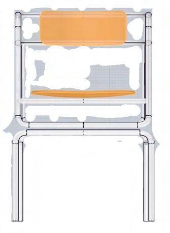 易於運送與組裝 平整化零組件與可堆疊骨架於大量運送時 可減少空間使用並易於大量組裝 適合的尺寸設定 輕量小巧的尺寸易於搬移並符合不同身高使用 椅背高度於骨盆上緣,減少駝背並維持專注坐姿 手紂處可放於骨架上與桌面平行 ROJOY