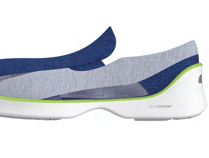 近年來高齡化的成長,中老年人口數愈來愈多。隨著年齡增長,足部的疾病與 退化將愈普遍發生;而如糖尿病、肥胖症等等不良疾病也容易對於足部造成疾 病風險。 外出多運動對於健康有益,但中老年長者常因足部問題而對於外出有所排斥, 而根據研究指出許多年長者並未選則適合自己健康狀況的鞋子。總歸來說,足 部是身體健康的基礎,而合適的鞋子則是相當重要的。 設計背景 BACKGROUND 足弓塌陷 腳部變形 輕量 透氣 舒適 鞋底足弓支撐 包覆性與寬大腳趾空間 行走輕鬆無負擔 降低足癬與異位 足型包覆與彈性親膚 減少製程布料浪費 環保 足部缺乏支撐 足部外擴、拇指外翻、錘狀指 中老年常見足部疾病 針織材質特點 COMFORT&RUNNER COMFORT&RUNNER KNIT SERIES