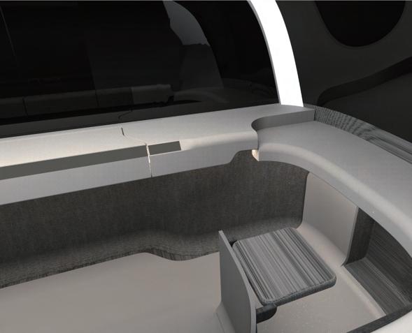 多元艙體互動模式 通用可調式座艙 公共區座椅伸降隔板 提供單人、雙人、三人與四人旋轉獨立空 間。全隔離玻璃隔絕外界噪音;個人娛樂 螢幕可結合提供更寬闊視覺感受 可收折坐墊除了提供一般乘坐外,輪椅與站立乘客皆可使用 公共座椅可伸降隔板提供短程乘客安全與隱蔽的空間 ULTUS