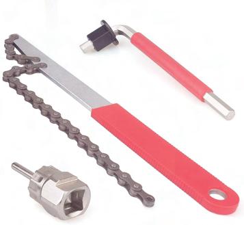 套筒套入飛輪中心,飛輪固 定板手套入飛輪最小齒 套筒板手及固定板手各反 方向施力 飛輪鬆脫拆卸完成 將板手套入飛輪中心並鎖緊 飛輪安裝完成 拆卸 與 組裝 固定飛輪 飛輪旋緊 完成 施力 完成 CASSETTE REMOVER