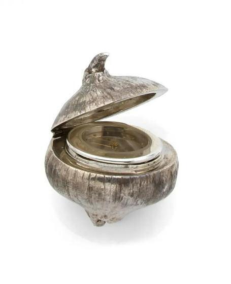 Rare sculpture-montre représentant un oignon en argent traité au naturel.